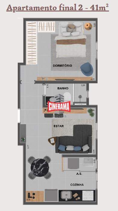 Conta com 41 m² de área útil, sendo: