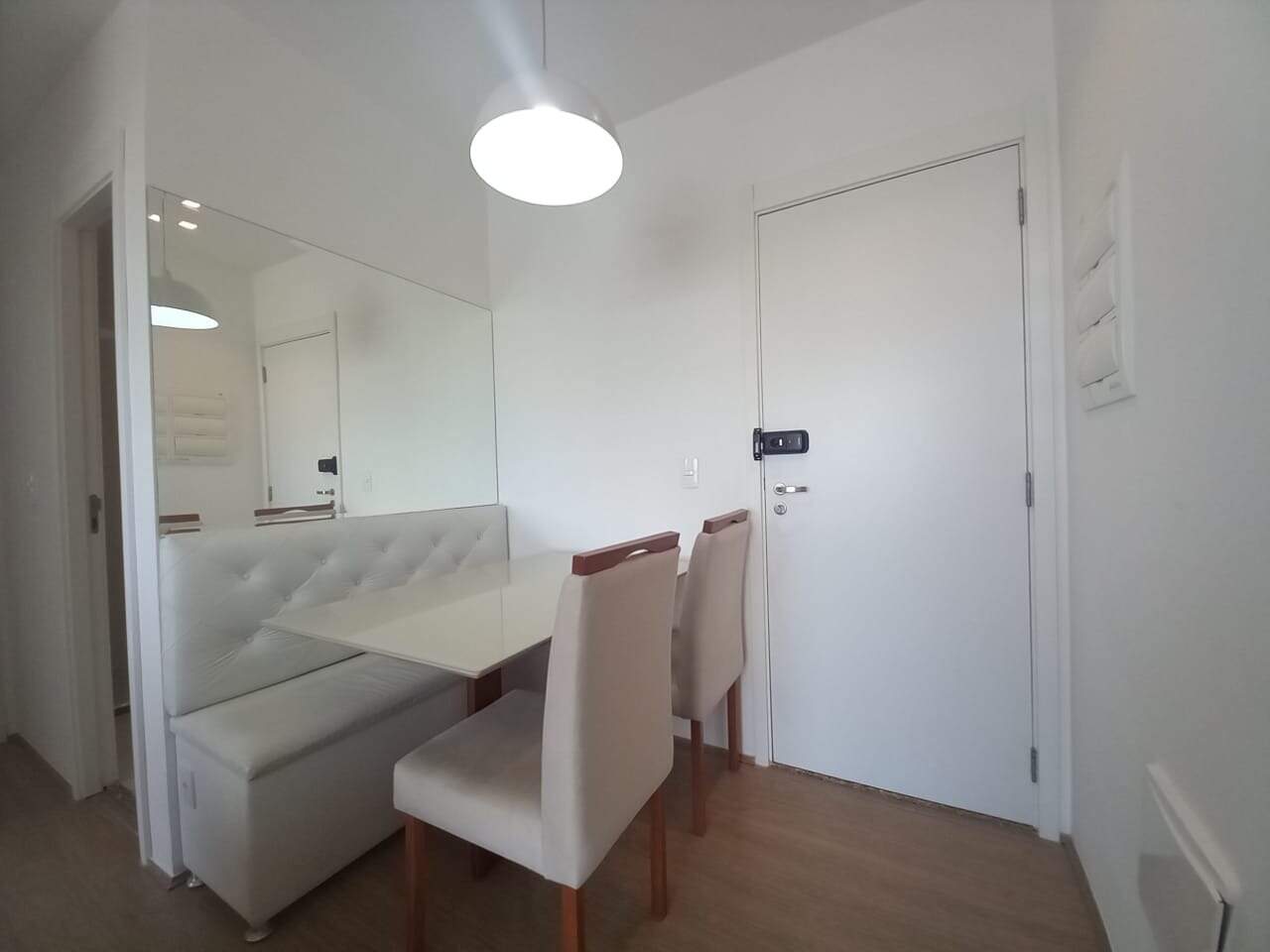 - Sala de jantar com canto alemão, 4 cadeiras e espelho;