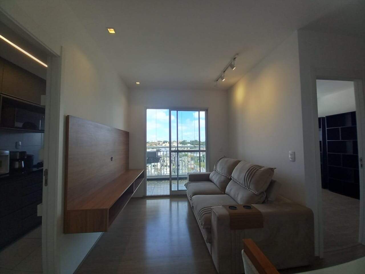- Sala de estar com sofá, painel;