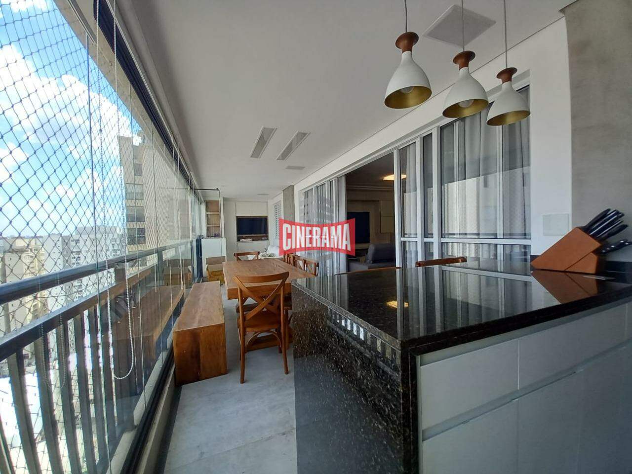 Possuí porta blindada da sala, dois ambientes, com ar condicionado, piso em porcelanato, lavabo, varanda Gourmet envidraçada e com churrasqueira.