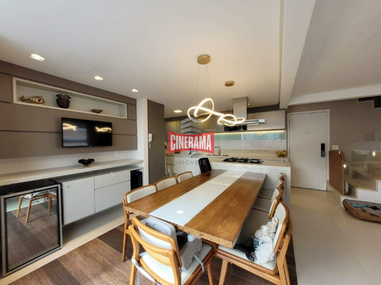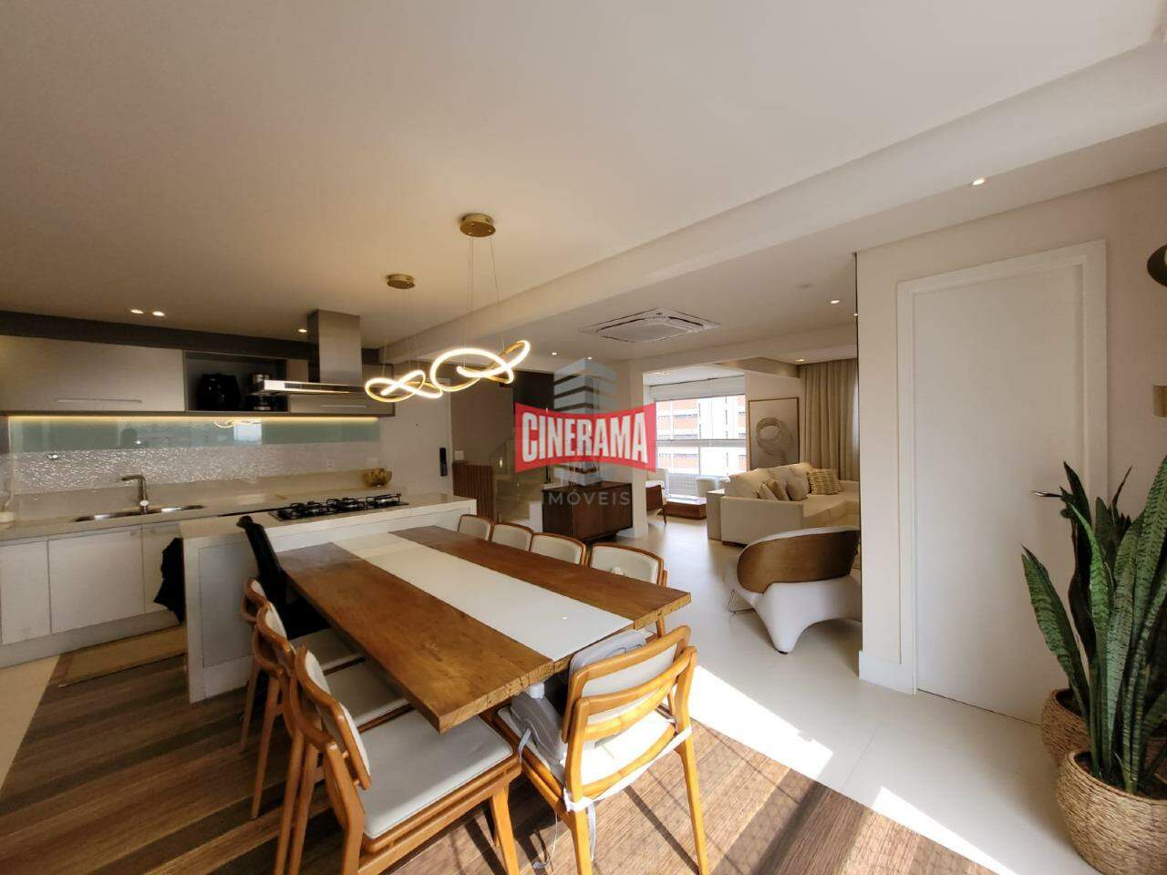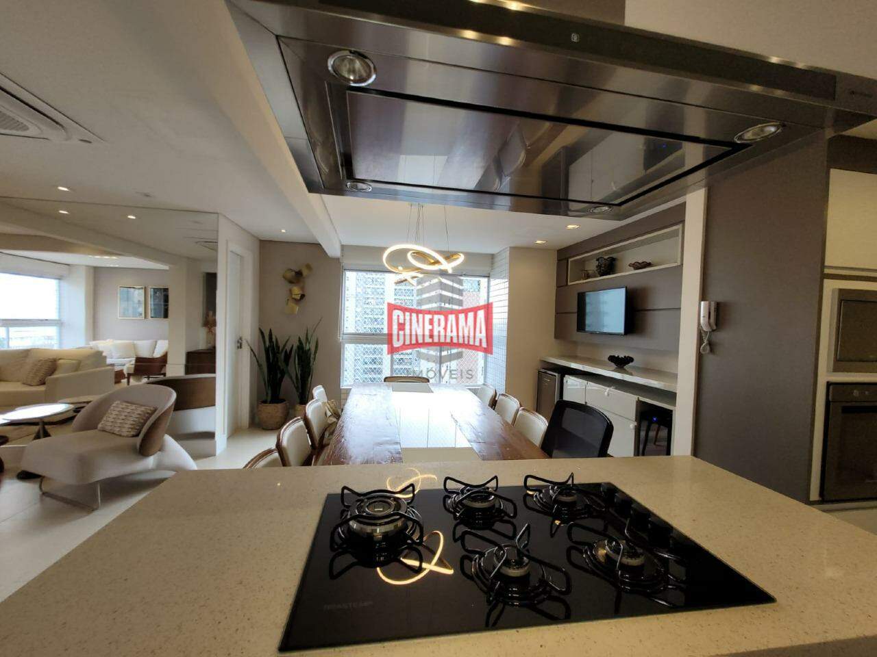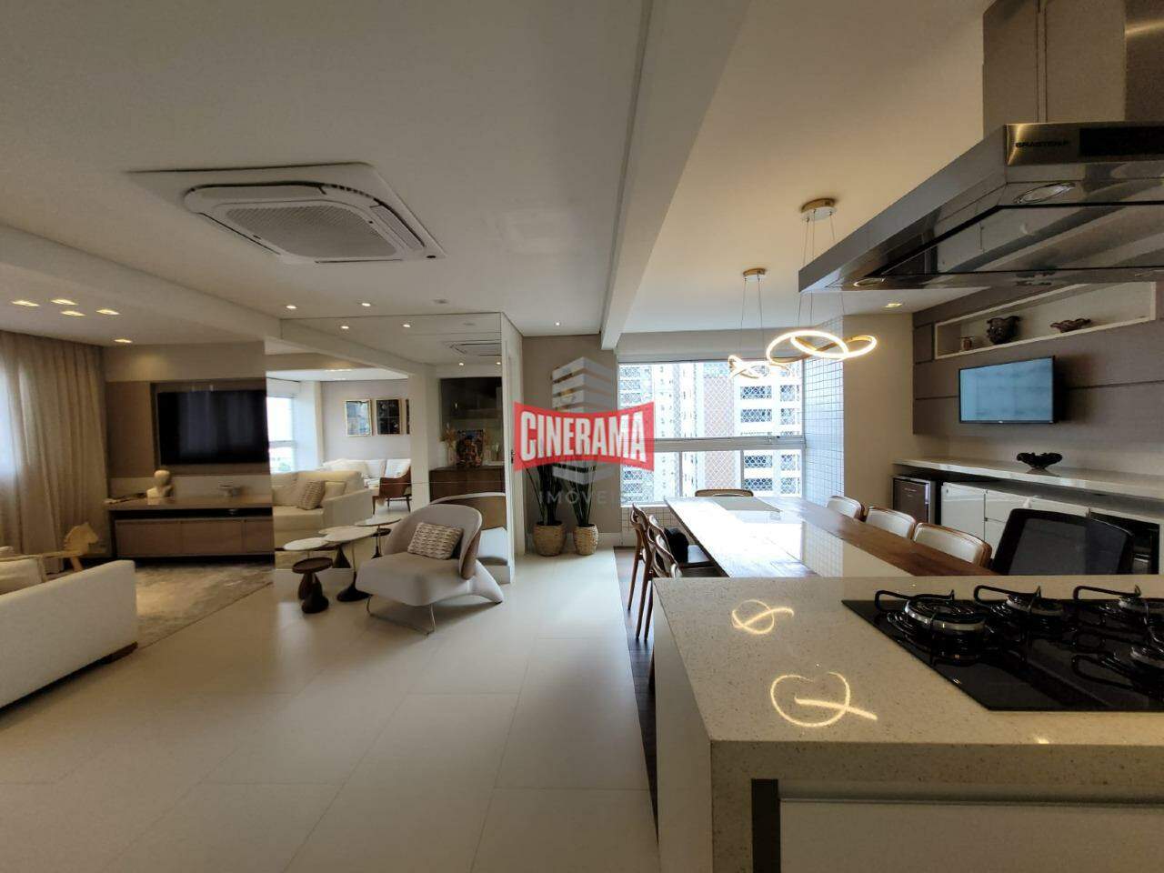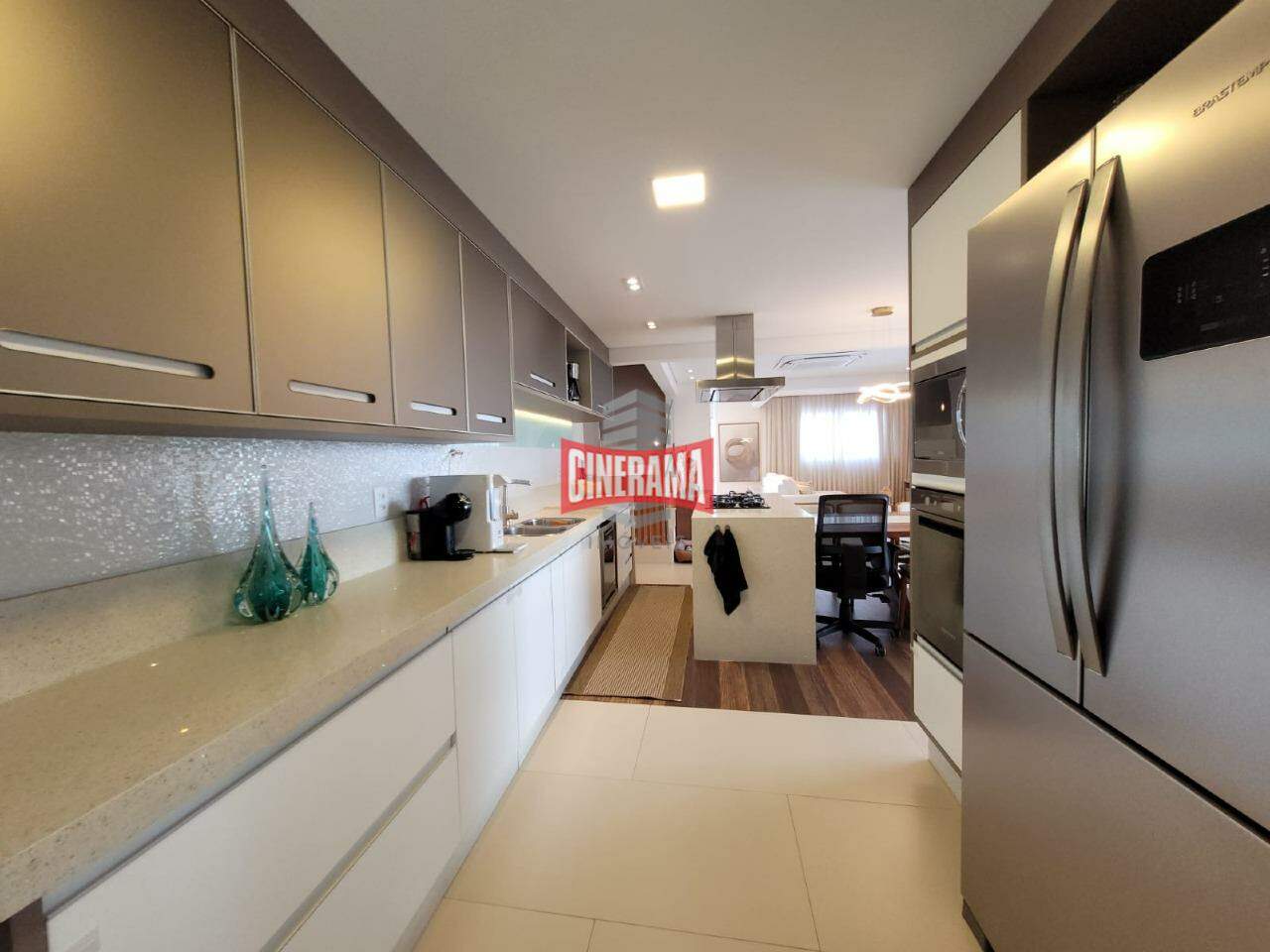 - Cozinha em conceito aberto, com ilha integrada a sala