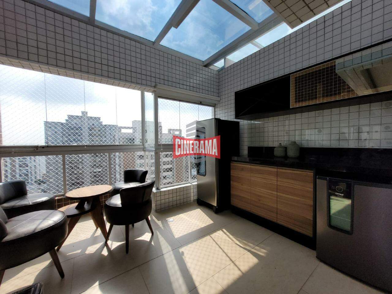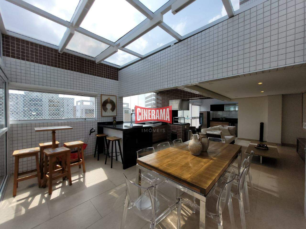 - Cobertura de vidro retrátil e sala de estar