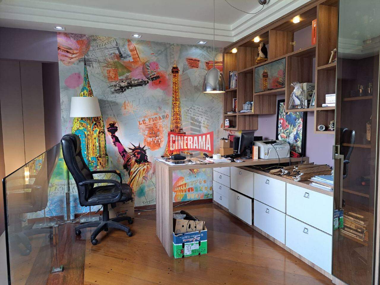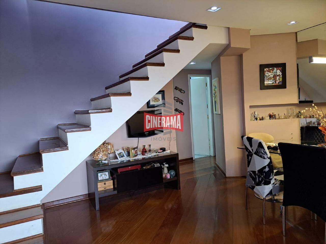 Com uma área privativa de 250m2, esta cobertura possui no pavimento inferior: