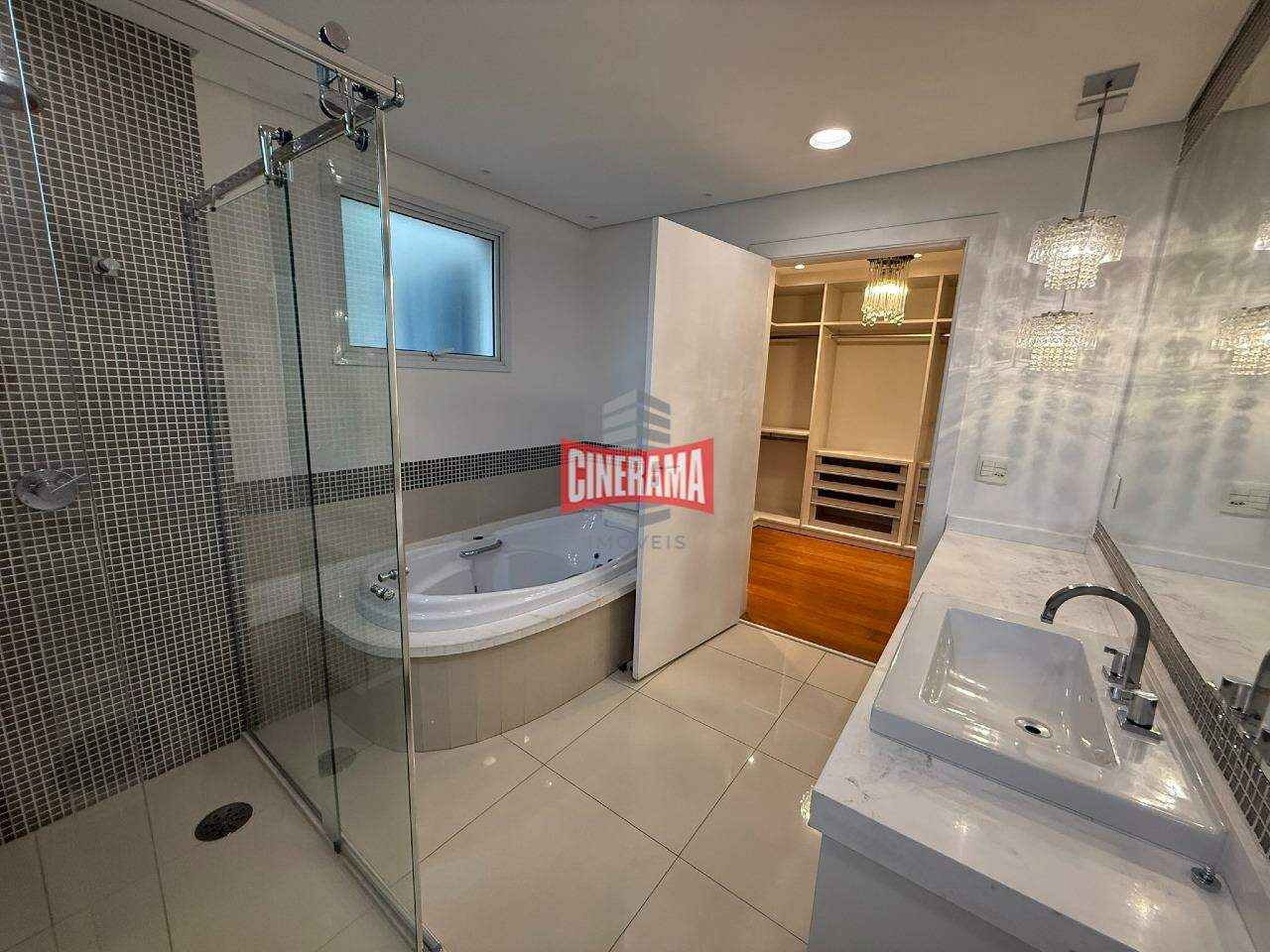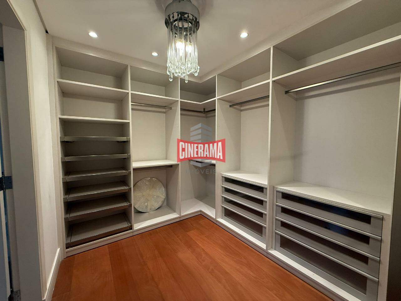 - 4 suítes, que foram revertidos em 3, sendo a quarta incorporada à suíte máster que ficou com 2 closets planejados e 2 banheiros independentes;