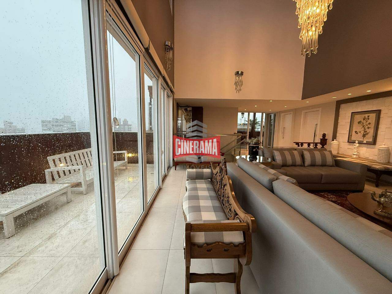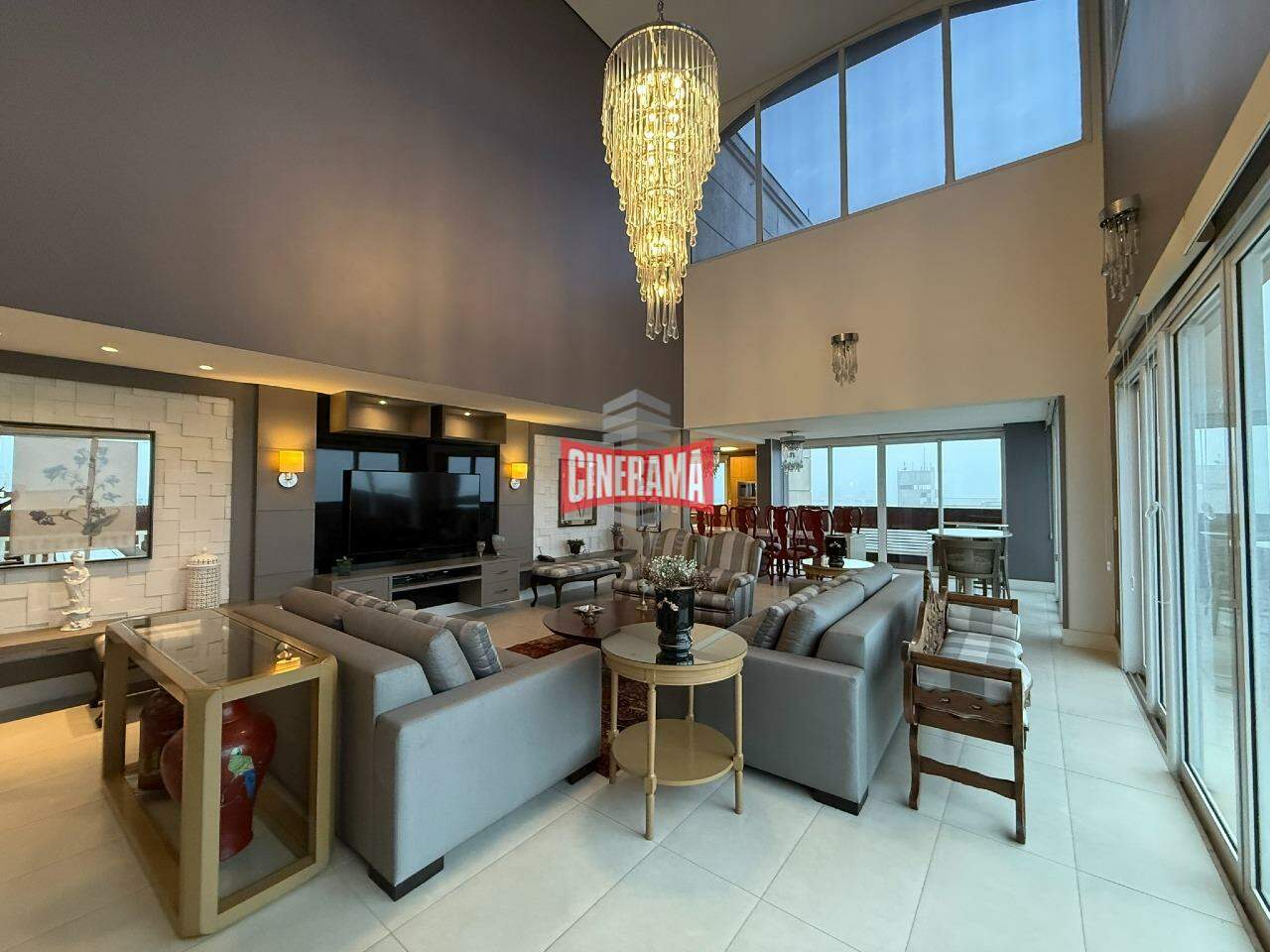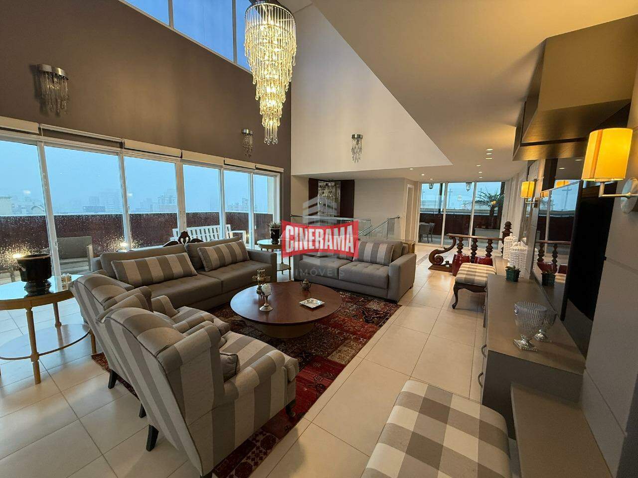 - Living mobiliado com pé direito duplo;