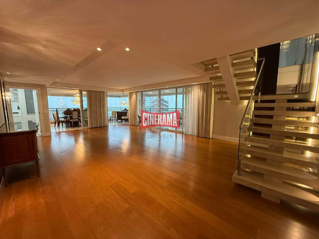 - Living amplo com piso em madeira;