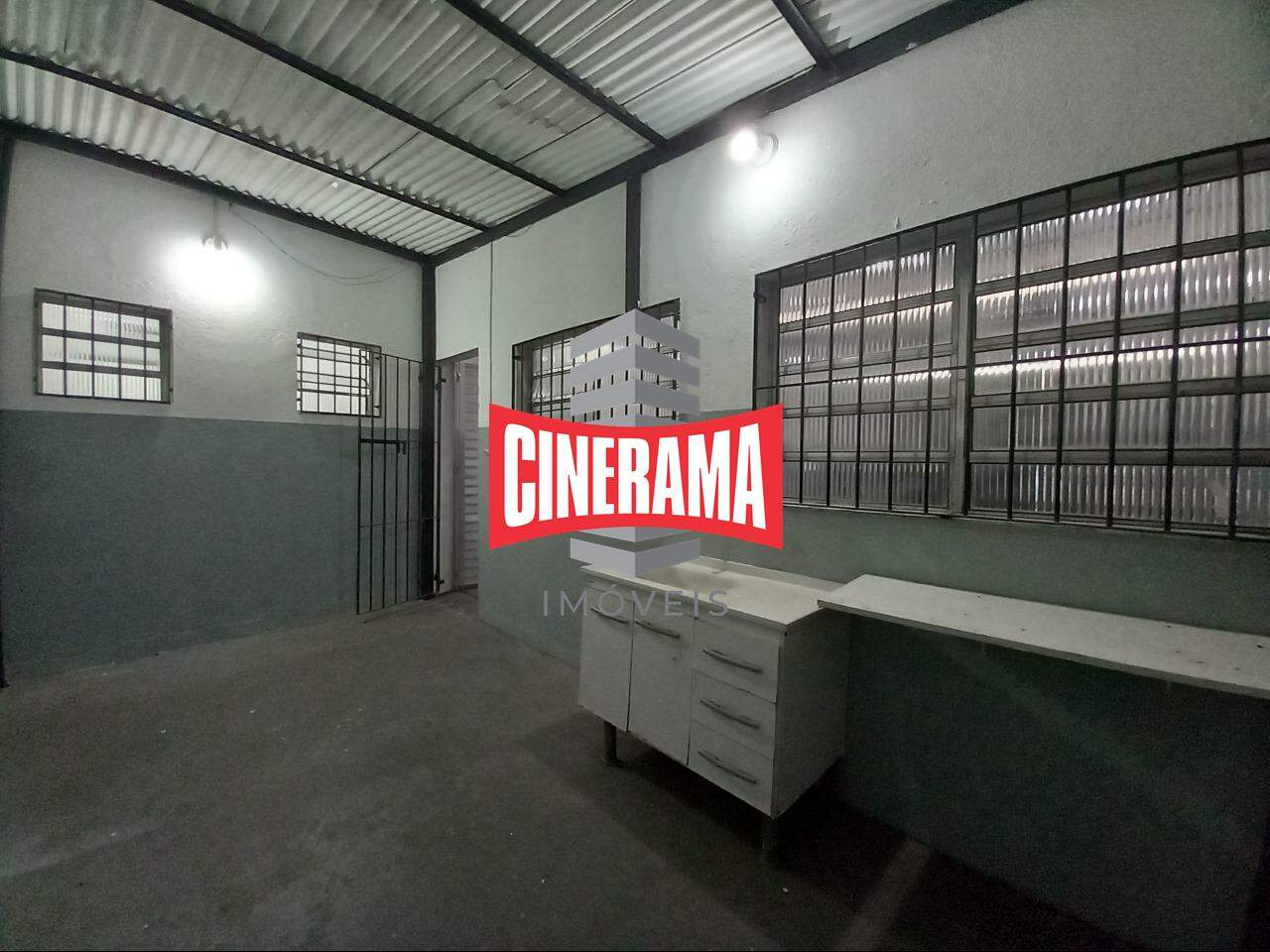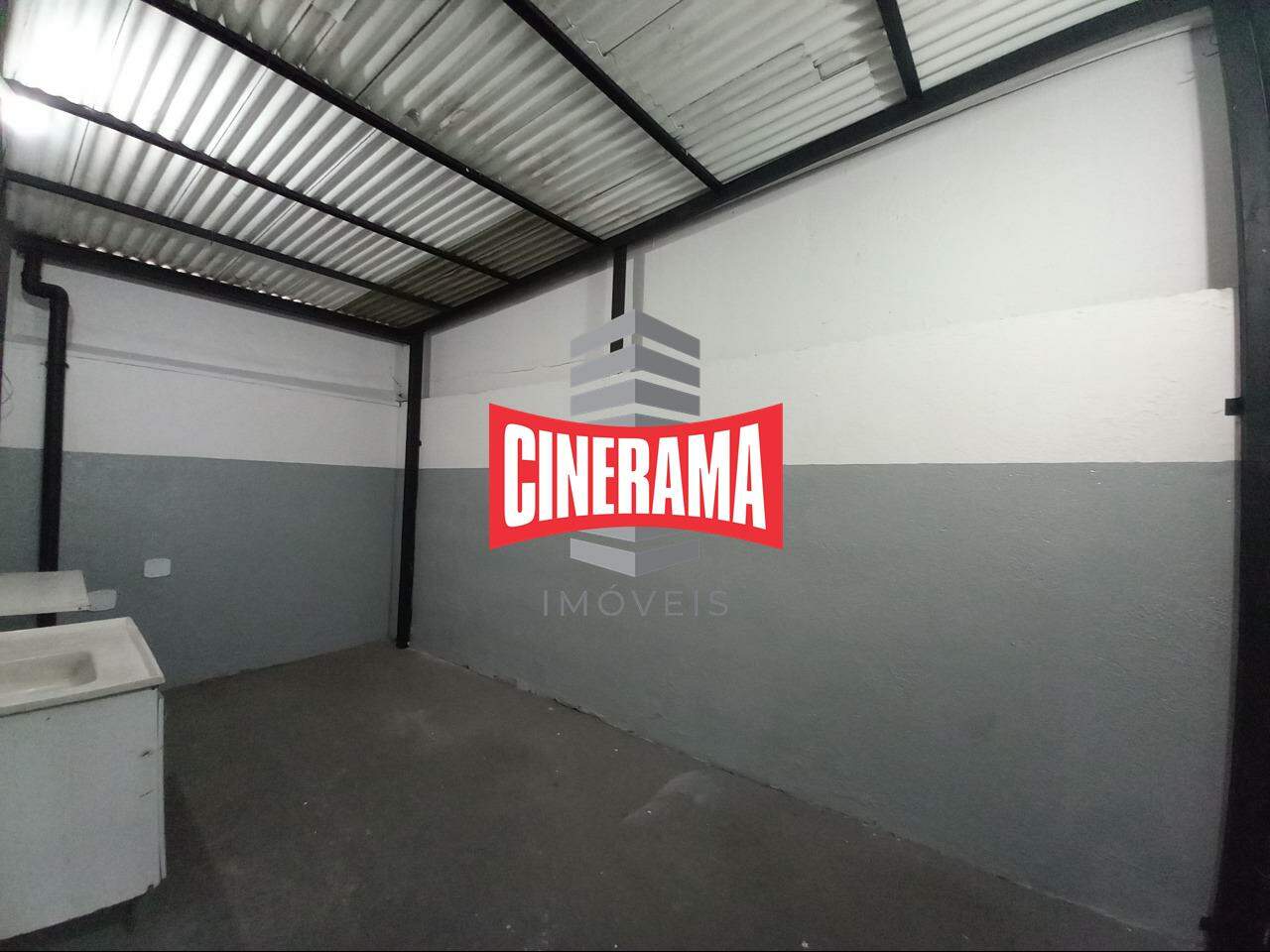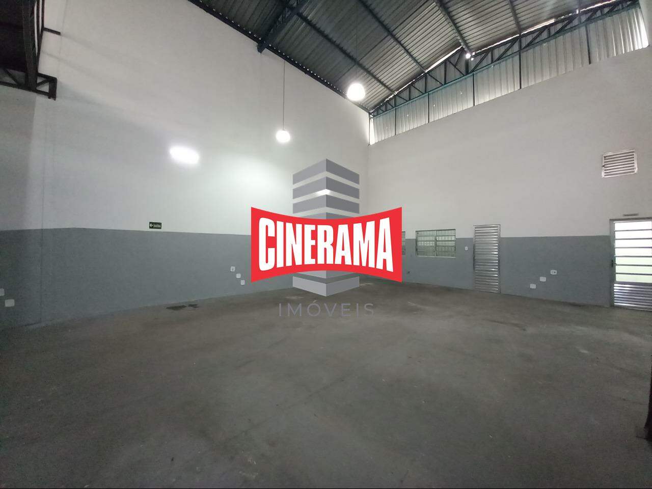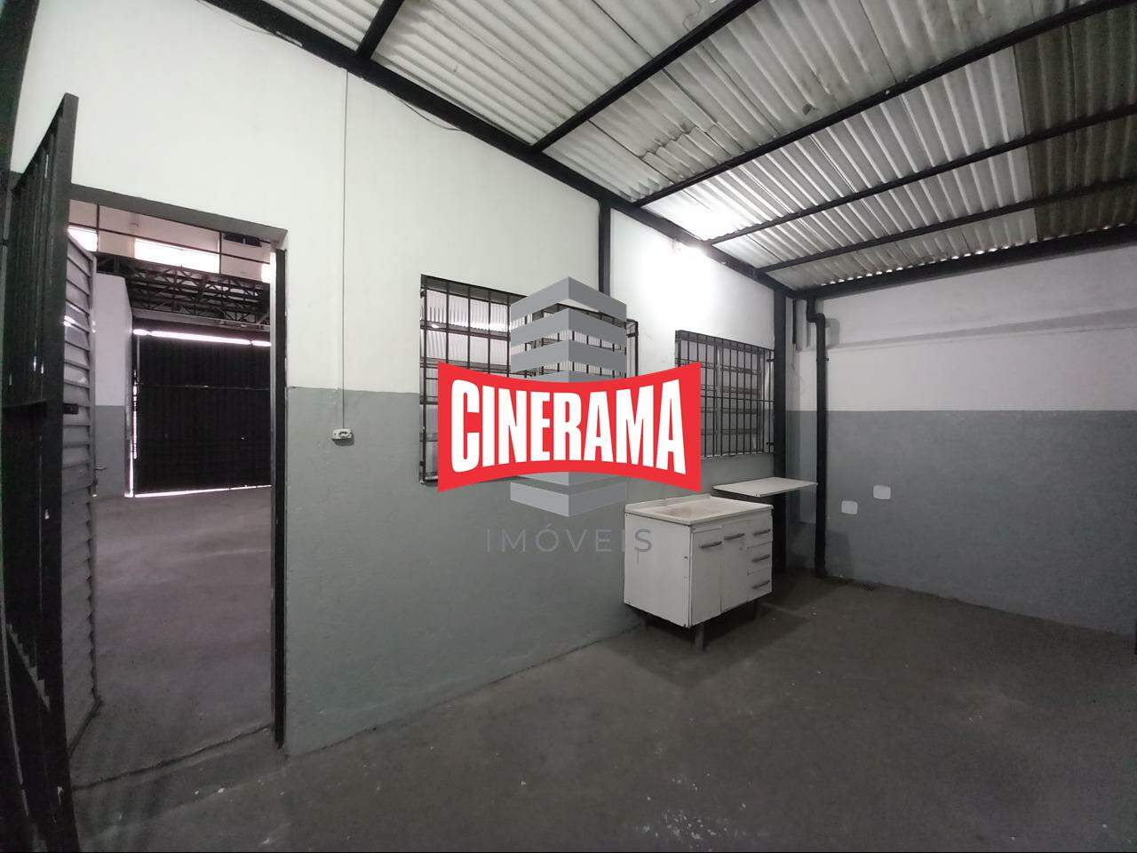 O galpão tem piso industrial, pequeno quintal e entrada para caminhões.