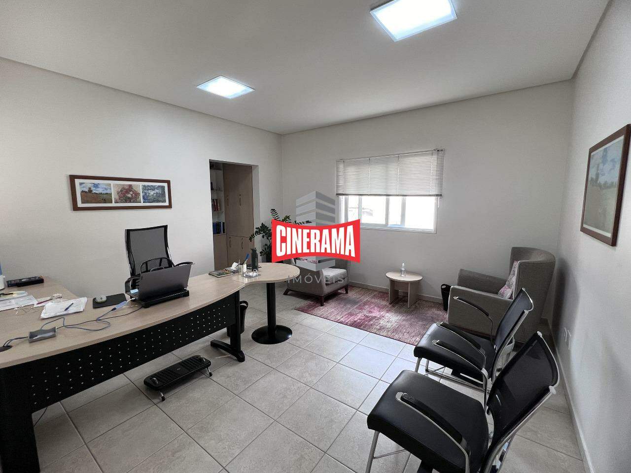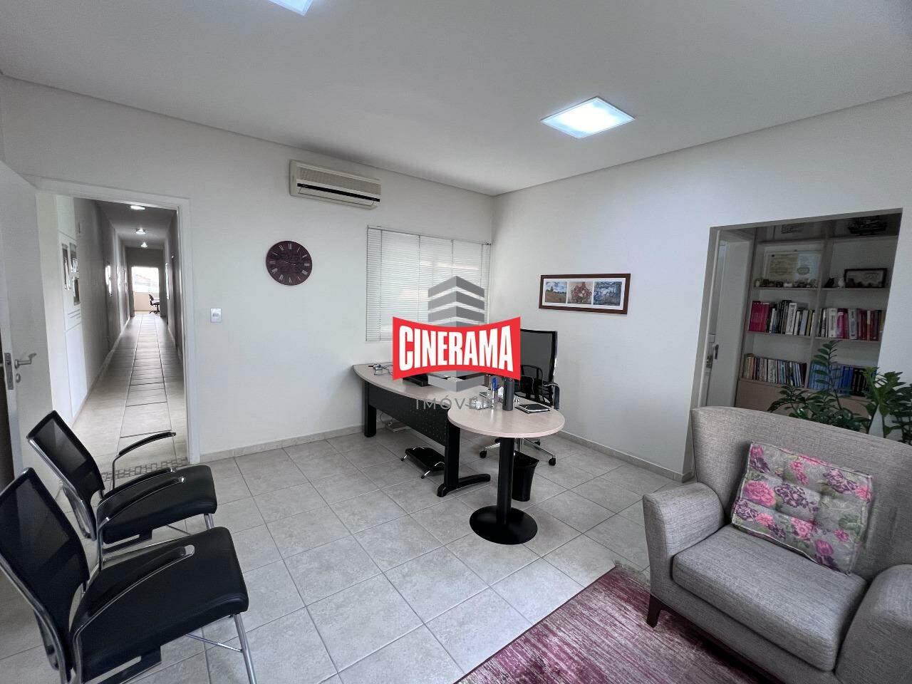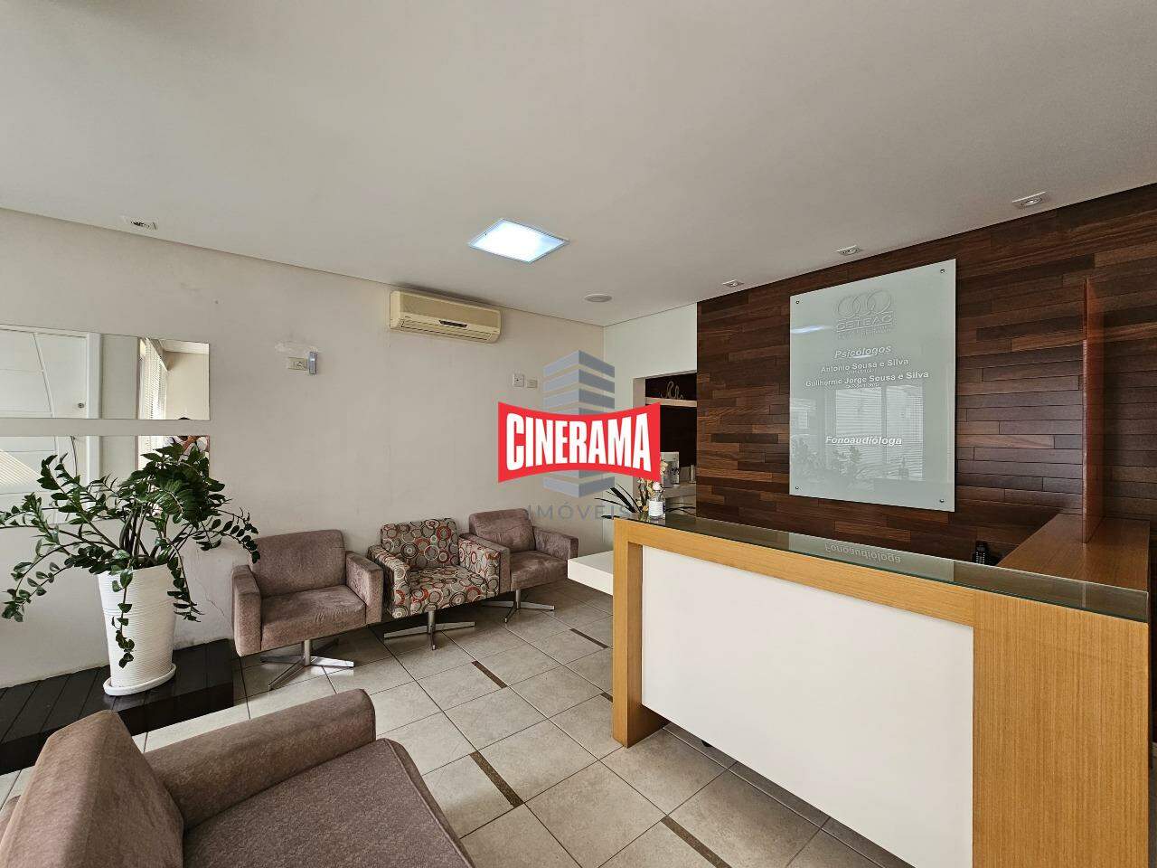 - Piso térreo com recepção, sala de espera, 2 banheiros, 3 salas de 3,40 x 4,30 m, copa, jardim de inverno;