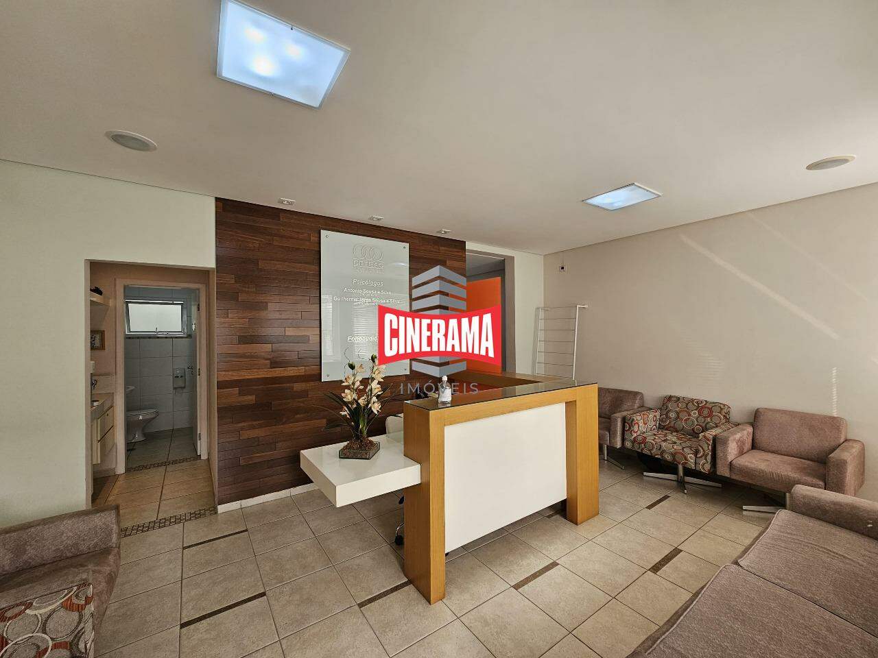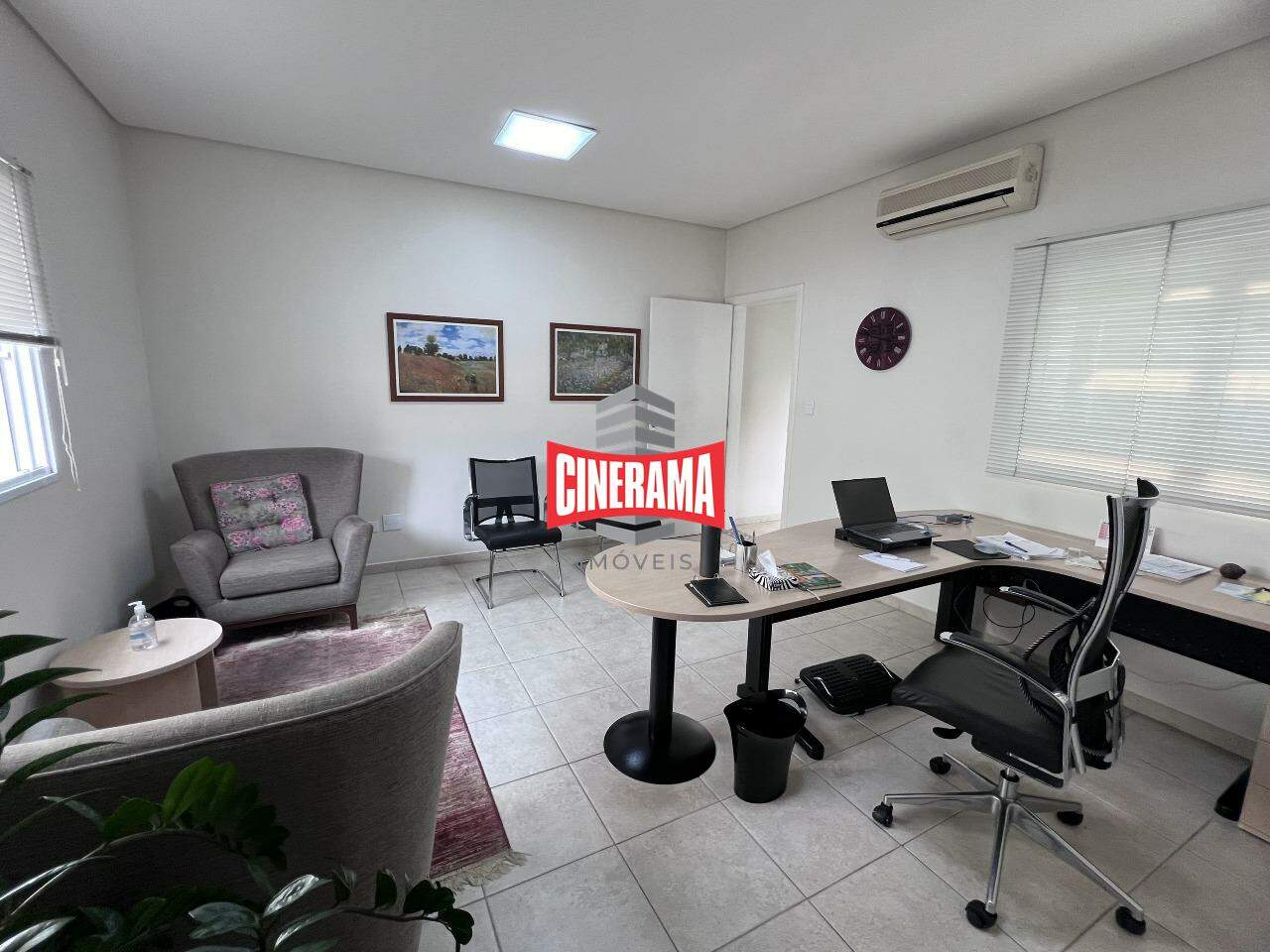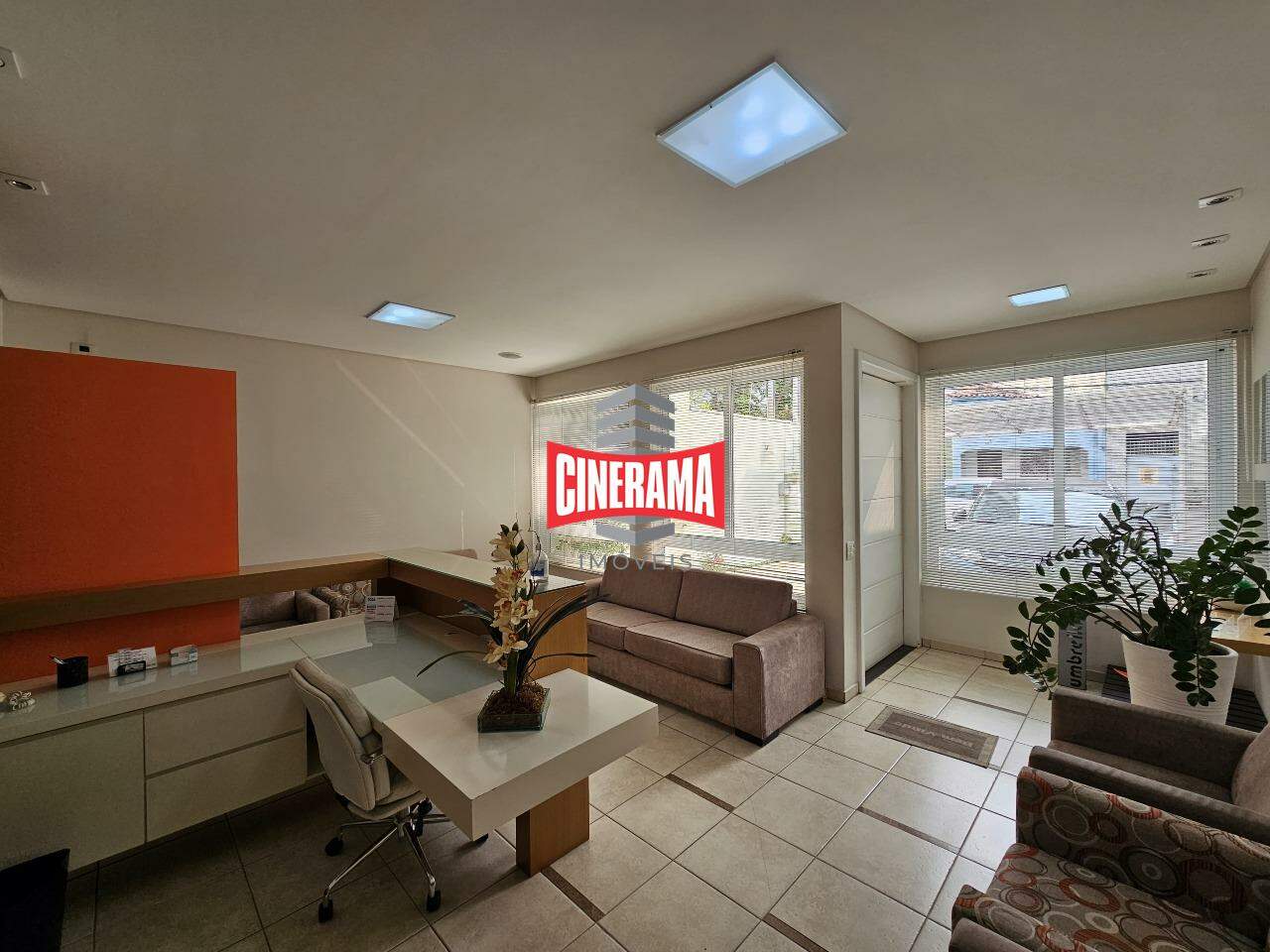 - Piso térreo com recepção, sala de espera, 2 banheiros, 3 salas de 3,40 x 4,30 m, copa, jardim de inverno;