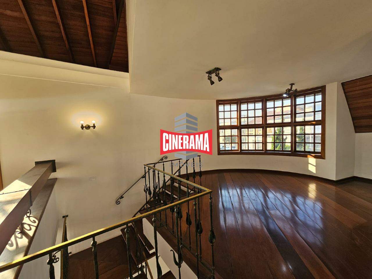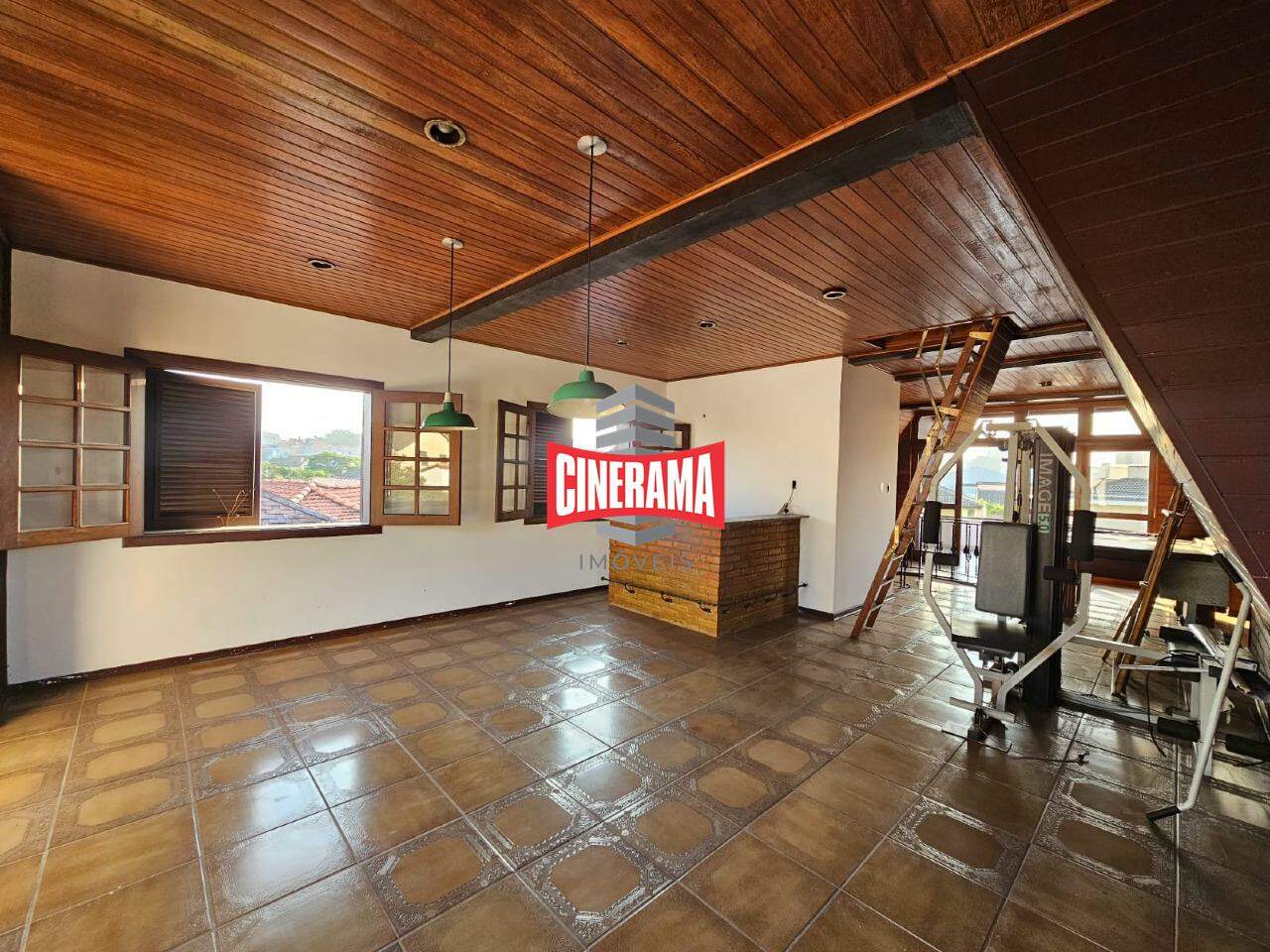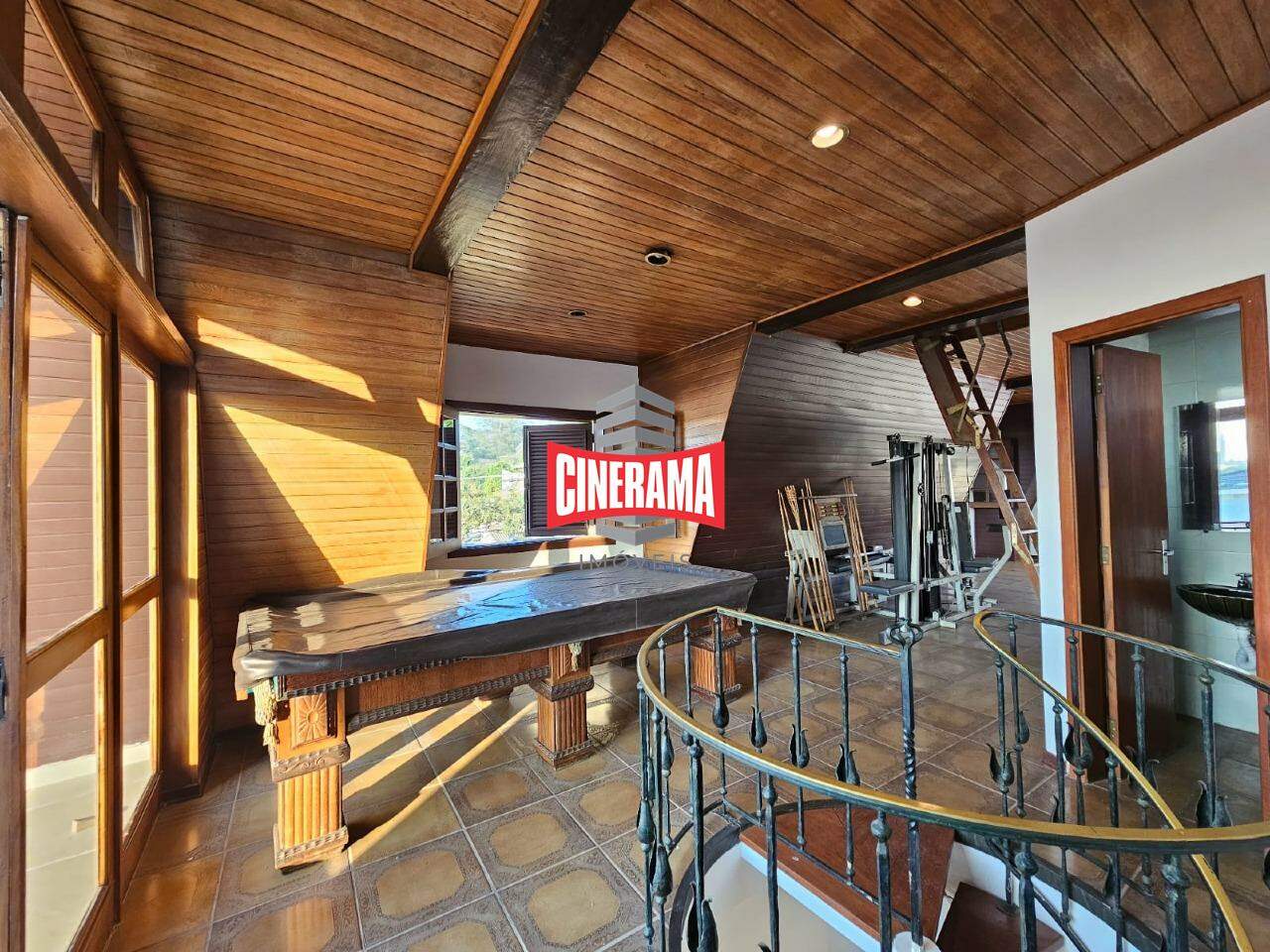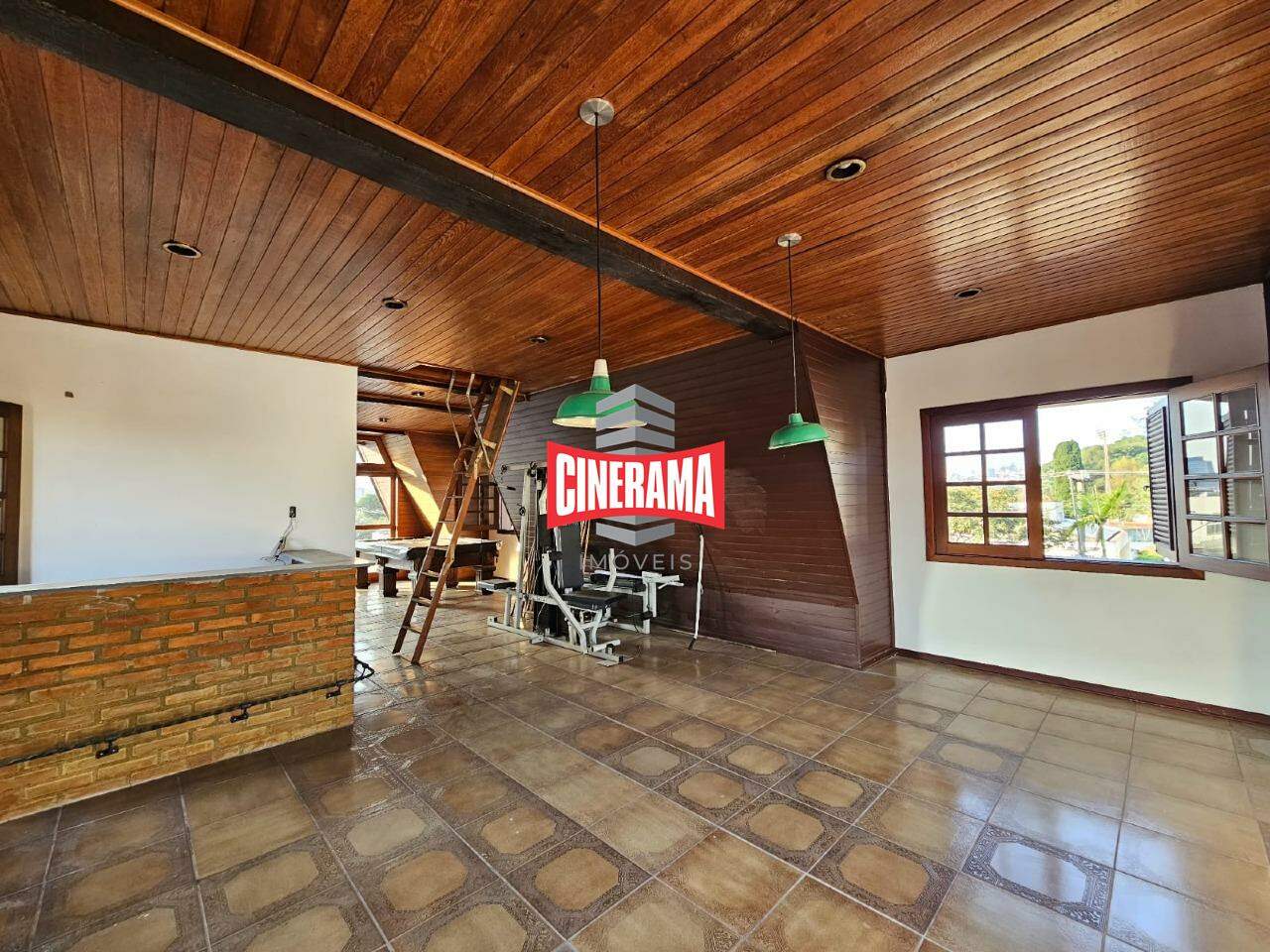 Com pé direito duplo, sótão com sala de jogos e banheiro.